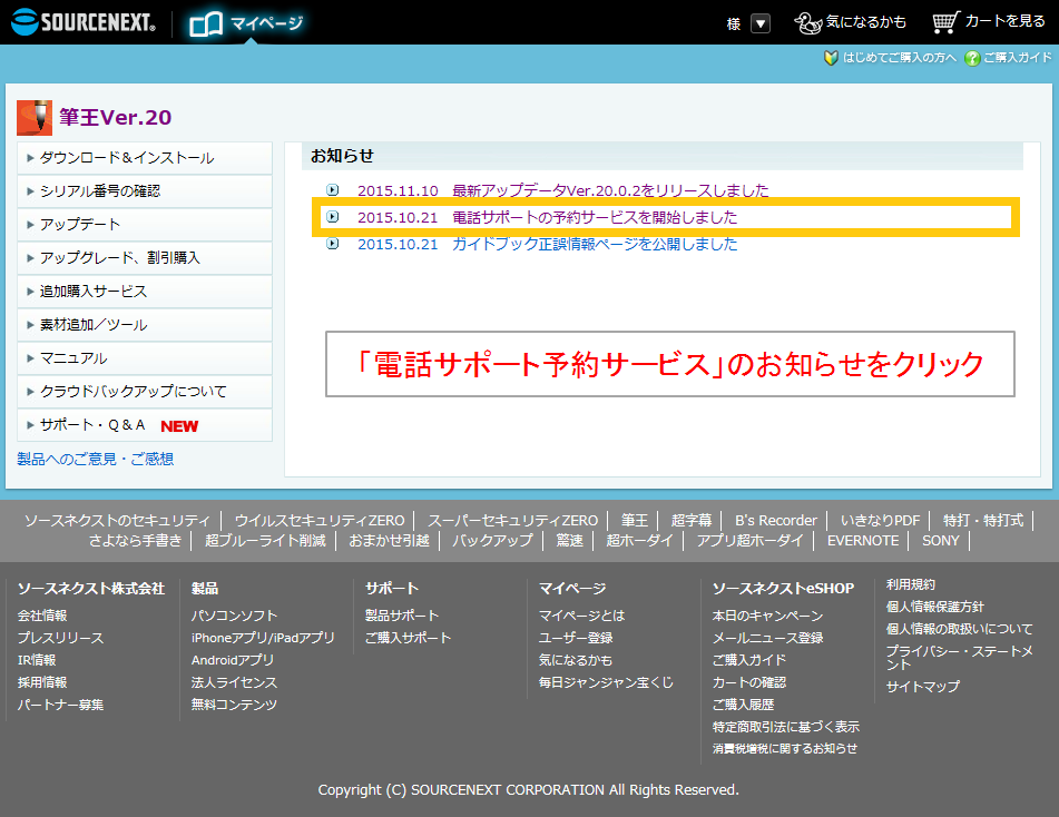 電話サポート予約サービスのご利用方法筆王公式ガイドブックダウンロードページ ソースネクスト総合サポート