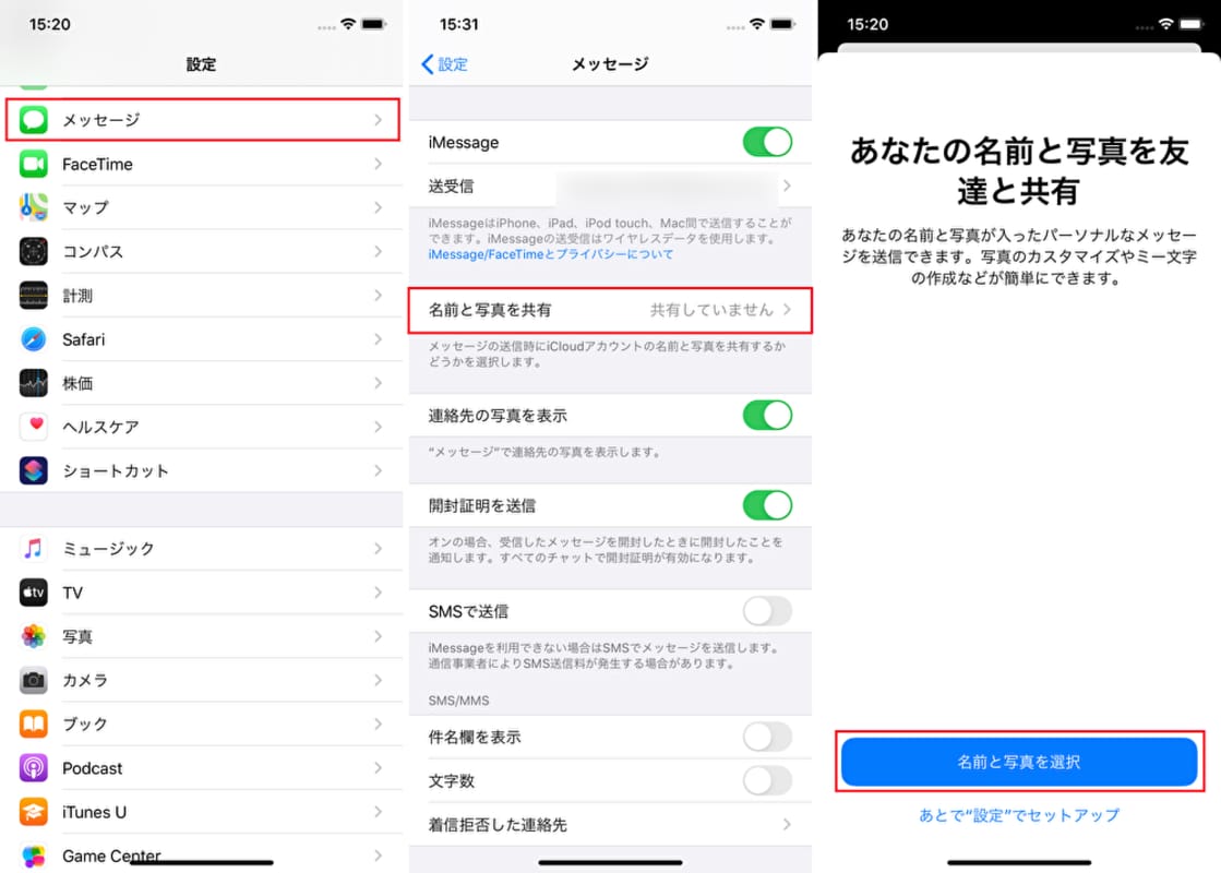 Iphone メッセージ 名前と写真を共有