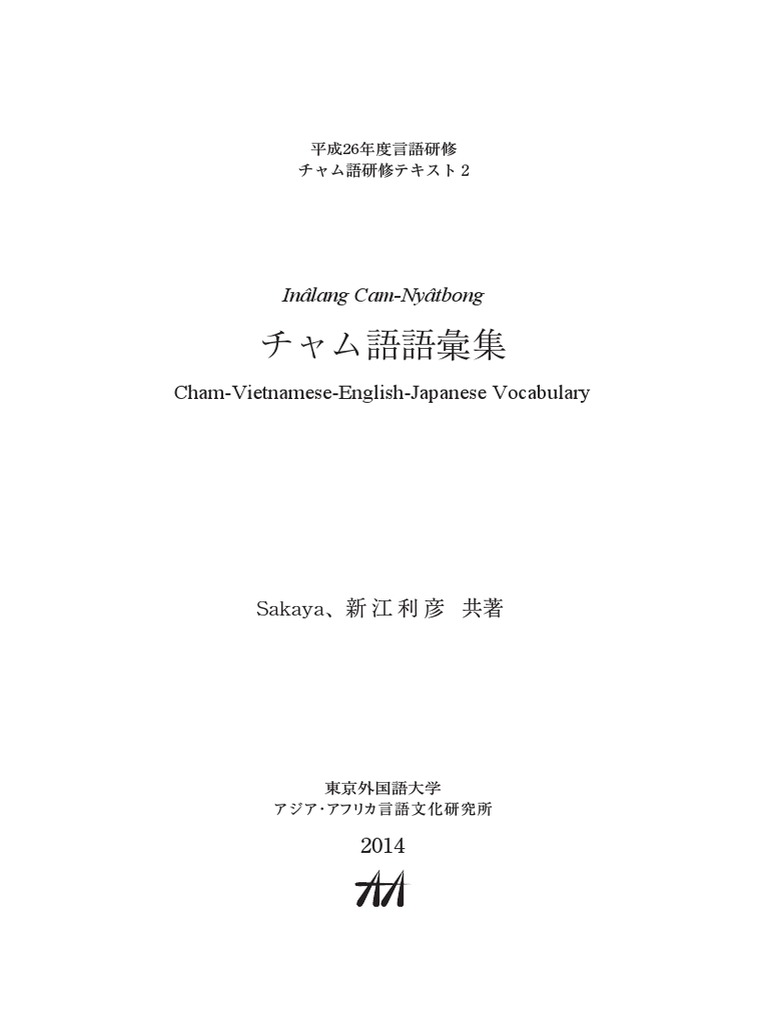 Cham Vietnamese English Japanese Vocabulary In Lang Cam Ny Tbong Pdf